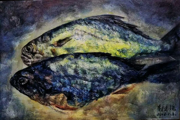 《鱼·系列》,丙烯画,尺寸:60×50cm。
