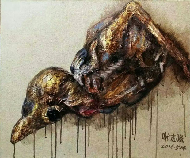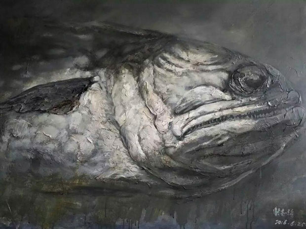 《鱼》,丙烯画,100×80cm。2016.6.25