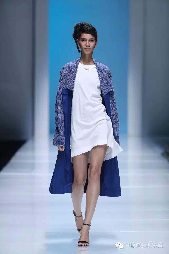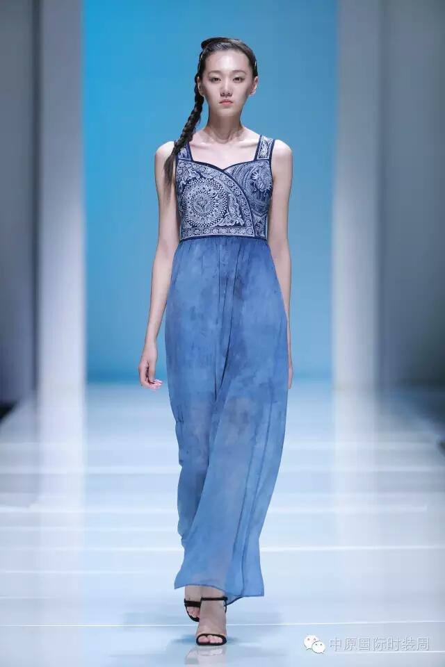 第四个系列是“白介蓝”,设计灵感来源于贵州的蜡染。“白介蓝间几生花,立于浮世最是纯”。这句话是设计师田沛滋对于蜡染的理解。植物蓝靛印染牛仔不仅不会污染环境,更有利于人体皮肤,配上非遗传承人的精美蜡染和设计师的时尚版型,给蜡染赋予了新的生命。