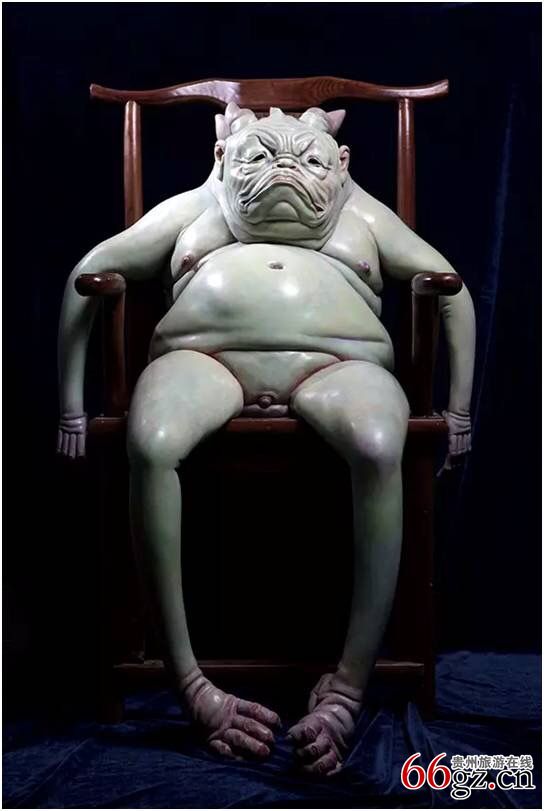 当时我买了一个明朝的太师椅,它是一个中国的传统物件儿,是的很庄严,而我做的这个形象又是不太正经的,两者有反差,这件作品这种方面的考虑的确是比较多的。人跟龙的结合的确有政治寓意,但“龙人”这个系列的作品后来就过了,把“龙”这个符号去掉了,我后期我觉得老是跟特定的符号绑定在一起去创作意思不大,就直接关注生命直接做“人”就好了。