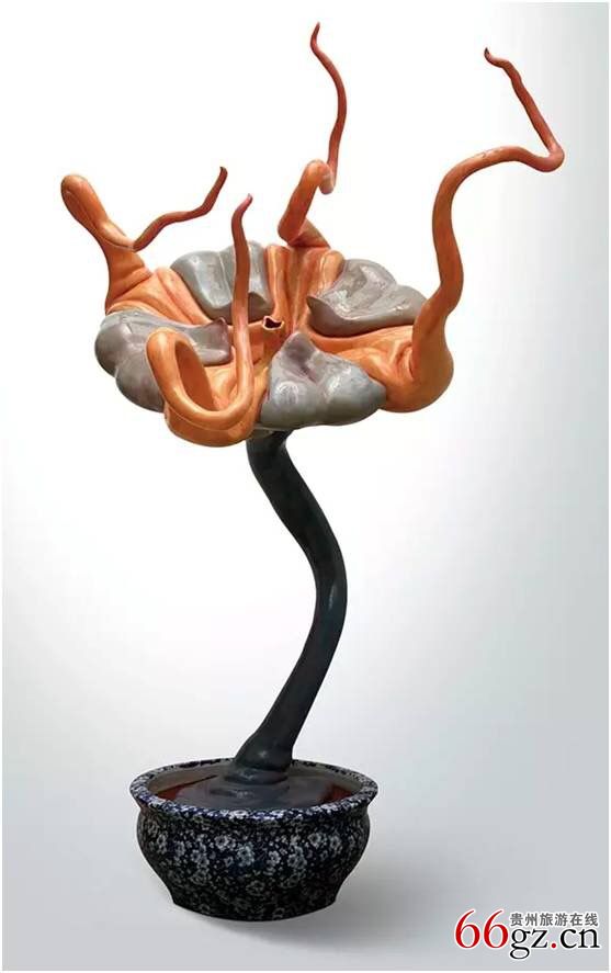 《盆栽》这件作品里,几片飞出来的东西其实是舌头。中国的盆栽在我看来和中国包小脚的习俗一样,都是一种扭曲的病态的审美观,病态的、不阳光的、阴暗的、腐坏的,就像中国过去的人物画,都是阴柔的东西。我把花做成一种“肉花”,让他产生一个病态感。