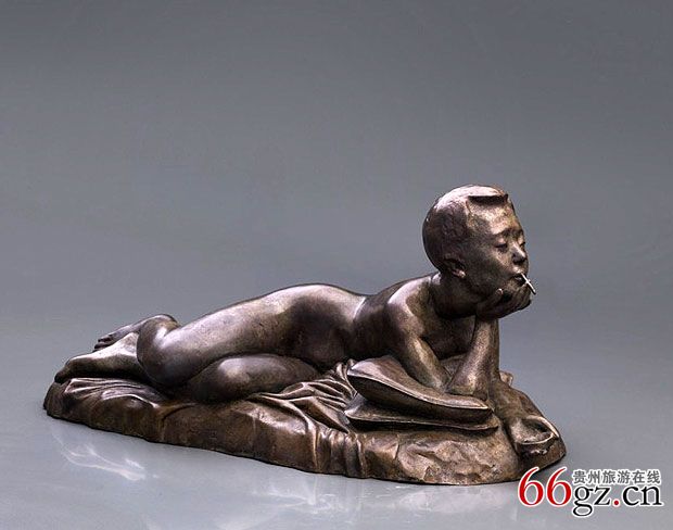 《抽烟的女孩》1996年 铜 49x21x22cm