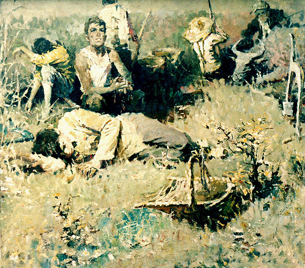 在一九七五年高中毕业后,曾希圣上山下乡,经历了三年多的“知青”生活,其时,习惯思考的他基于当时社会现状和自己身临其间的“知青”生活,“第一次”对社会和人生进行了反思:“……我感到我等确确实实是一块被国家荒芜了的土地,虽然大家都正值青春成长的关键时刻,都急需雨露的滋润和浇灌,却终日浑浑噩噩、度日如年,生命的价值体现为对青春的耗损,这无疑是一曲人生的悲歌!”彼时,曾希圣在“知青点”还曾画了大量速写。那个时期,也是他绘画生涯中对社会和人性凝视和观照的启蒙期。