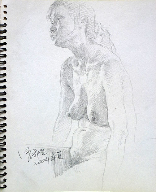《逆光下的裸妇》纸本铅笔 26-cm×19cm 2004