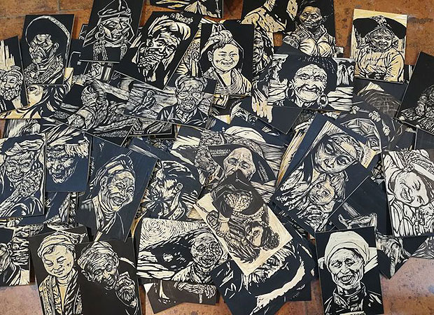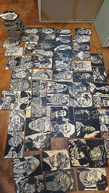 谢志强的《贵州人》百幅系列木刻版画作品堆放在一起还是很震撼的吧!