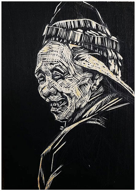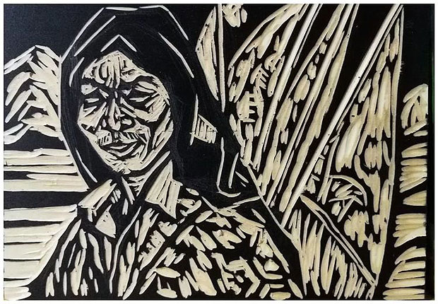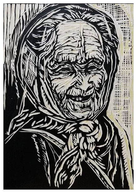 木刻《老妇》。尺寸:22X15cm。2017.10.12