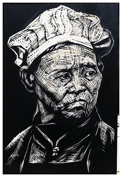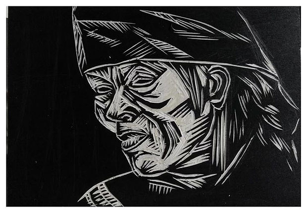 木刻《老者》。尺寸:22X15cm。2017.9.30