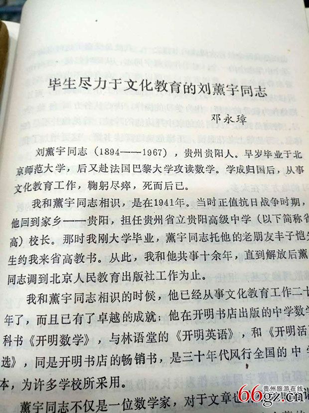 5所中学合并后,出任第一任校长的刘薰宇,曾是昆明西南联合大学数学系教授,还曾任教于河南省立第一师范、湖南常德第二师范、上海大学附中、上海立达学校等。新中国成立后,他曾全面主持全国中小学数学教材的编审工作,实属贵州人民之骄傲......