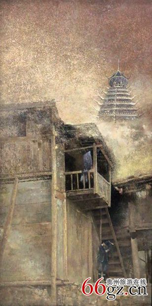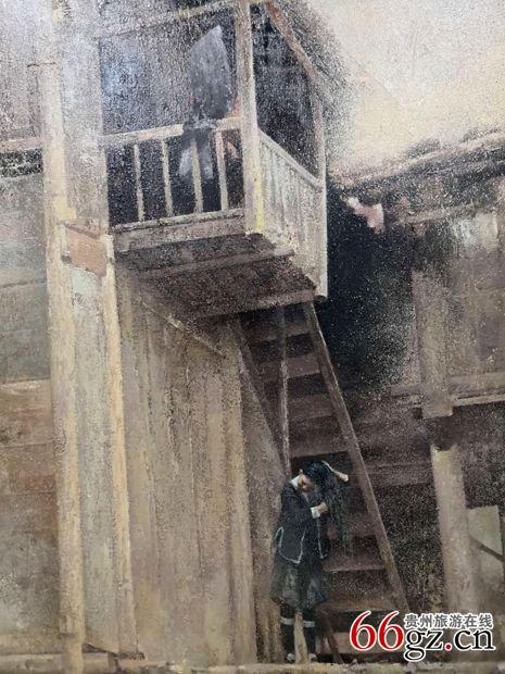 牛角梳穿梭在吊脚楼的石梯子上