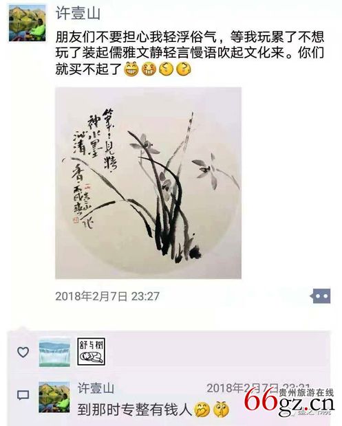 红尘有多深,全凭乱翻腾,自己不闹腾,何人来识君?这年头,谁还不刷个朋友圈?哗啦啦,许一山开刷了,各种疯言快语,搭配墨还未干、钱已入账的文人画,哇咔咔,绝配啊!我墙都不扶了。