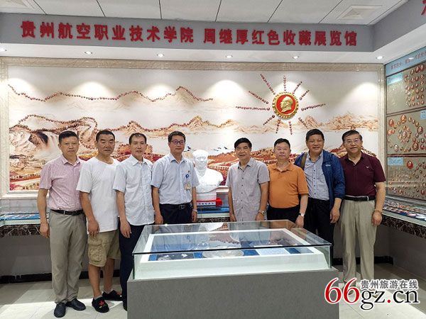 在收藏家周继厚的引导下,贵州省政协原副主席班程农、军品收藏家 都匀军分区原司令员罗燕军、警品收藏家 省公安厅原巡视员白平、贵州省电建二公司原党委书记,著名扑克牌收藏家陈祖万、中国名人馆馆长陈祖伟、贵州省农村开发扶贫促进会秘书长秦仁智等对贵州航空职业技术学院的红色收藏展览馆的藏品一一参观欣赏……