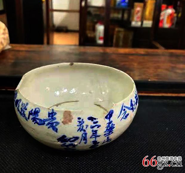 2021.5.16.下午3时,在贵州省贵阳市万东桥下的书画市场内的贵州品亿藏品鉴定中心内,笔者看见两个民国时期贵州的古磁碗,一个完整,一个残缺不全,碗上均印着有抗日的标语,很有故事……(如图所示)