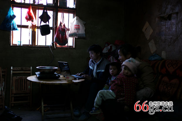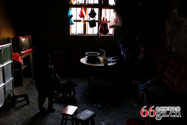 石奶引家坐落在公路外的一面斜坡上,为两层三间的木构房屋,看上去有些年头了,见我们的到来,石奶引热情地把我们迎进她家,进屋一看,里边陈设很是简陋,堂屋的靠窗一面摆放着一张低矮的圆桌,石奶引的儿子正在圆桌前摆弄电脑,右边是一张很陈旧的沙发,左边有一个橱柜,一台很陈旧的17寸老式电视机,堂屋和厨房黑洞洞的,不开灯根本看不清里边有些什么物件。
