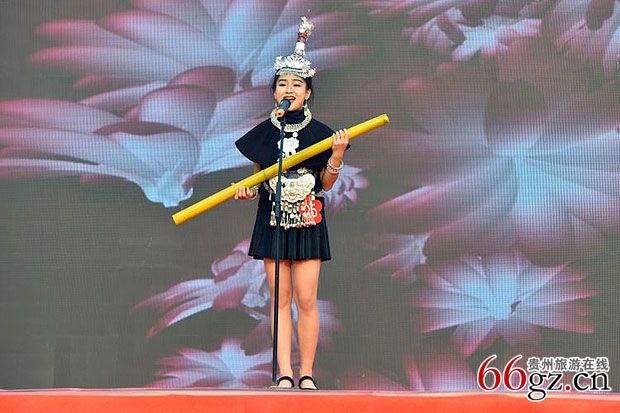 苗族之花选拔赛央雨木西手拿五谷棒在演唱
