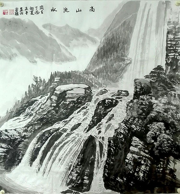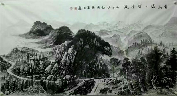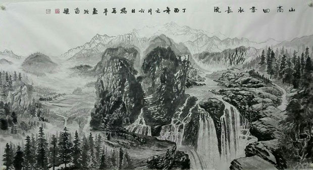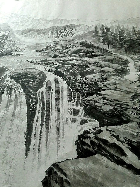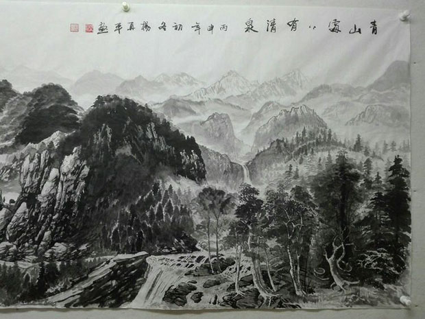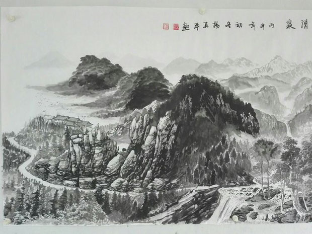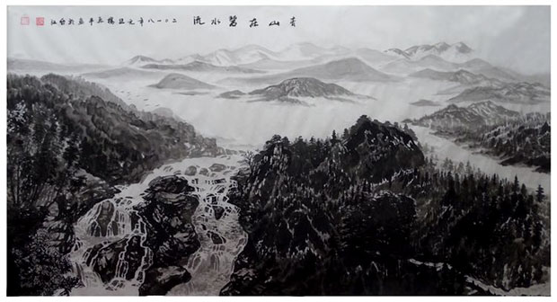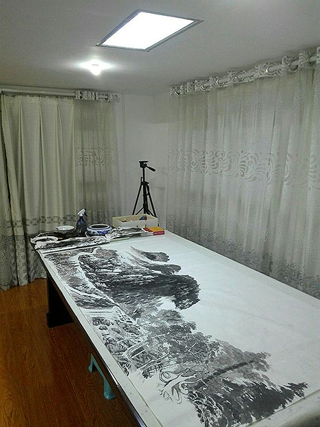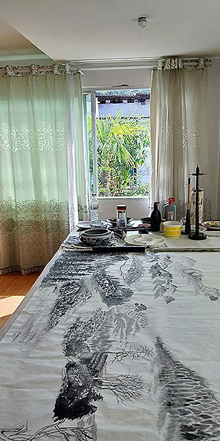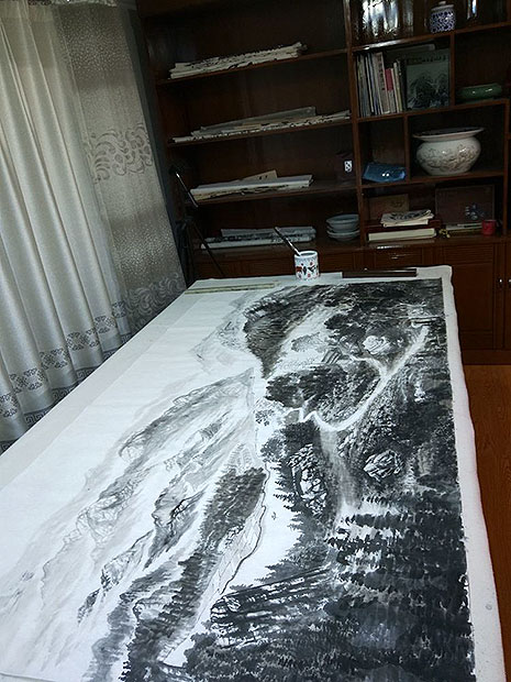 在创作国画《山青水秀》