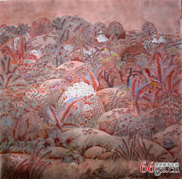 重彩画始于70年代初,延续至今 ,已有三十多年的历程。它重新高举以敦煌壁画为代表的中国民间重彩的旗帜,力求重振汉唐雄风,恢复色彩特有的表现力;它充分利用了现代色彩、材质运用方面的特长,大胆把西方抽象、及构成与装饰美感引进绘画中来 ,以特有的造型、色彩、肌理交织而成的视觉美感,极大的强化了绘画的本质特征,丰富了中国绘画的表现力。