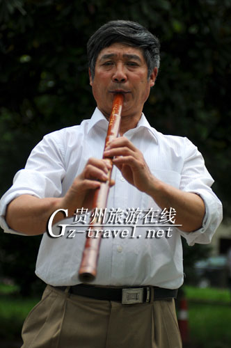 来自玉屏县刘泽松向市民演奏玉屏萧笛。