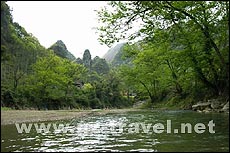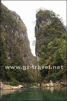 穿行于万绿丛中的格凸河,时隐时现,在迷雾飘浮过的地方,树林是那样的葱茏,小草是那样的嫩绿,峰峦是那样的青翠。就连这满山的鸟语,也是十二分的清脆,十二分的婉啭,一声鸟语简直就是一颗绿色的音符。山的雄浑,谷的深奥,展现给人的视角冲击和全新感觉,格凸因了这是雾似云的爱抚,才这般神奇,这般美丽,不亲临其景是难以体会到的。可喜的是,格凸开放已指日可待,届时,在这天坑地缝吞日月,格凸起雾的空灵意境之中,人们会进一步体会到格凸奇观的况味。