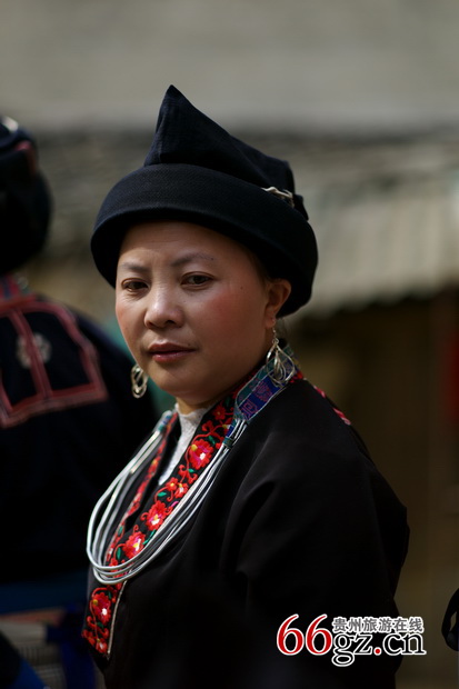 老年妇女的着装显得更加简洁,帽子呈盘状,中间有一个尖顶,没有装饰花边,整套衣裙全为青色,衣领绣有一条花边,没有任何点缀之物,显得更加素雅和谐。