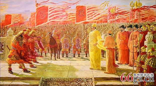 元帅颍川侯傅友德与副帅蓝瑛、沐英向洪武帝辞行,率30万大军攻打叛乱的云南梁王,史称”调北征南“。
