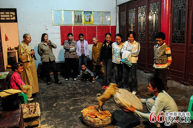 灵鹫禅院里会有教徒、信士、善士、香客等前往居住,在中秋节晚餐后大家在关圣殿门口聚会聊天。左二为住持华兴师太。