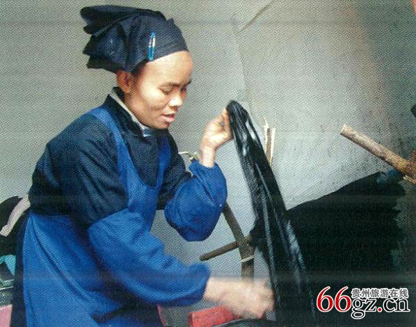在关岭布依族地区,几乎村村寨寨都会制作土布,纺线织布是布依族妇女都要学习的手工技艺,女孩子从小就要学习纺织。成年妇女几乎每人都有一架纺车,每年除农忙时节多数时间都是白天耕种,晚上纺织,冬闲时更是终日纺织。由于纺织工艺发展的需要,关岭布依族地区还普遍种植蓝靛,以此作为染指土布的原料。