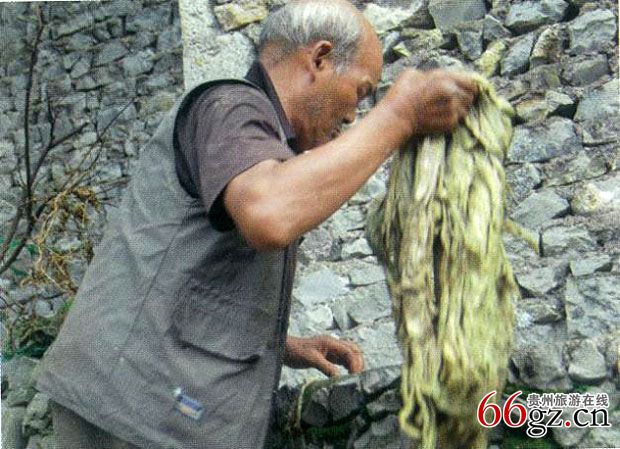 纸厂村造纸所用材料为枸皮,当地枸皮树不多,产量不大,枸皮树一般三年剥两次皮,中间停一年。这样的枸皮树较老,适合做造纸材料。纸厂村生产的白纸,以100张为一刀,捆扎好后进入集市销售,由于韧性很好,一摞一厘米厚的白纸,可以负重100斤不会断裂。而现在机器生产的白纸,则没有这样的韧性。