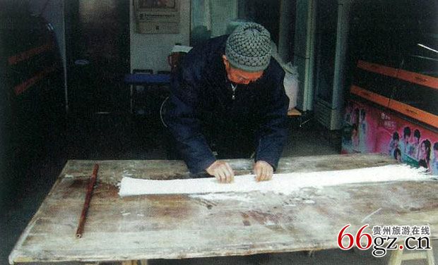 毛系作为观礼面条加工业中的老字号作坊,百余年来其加工作坊一直不停顿的生产制作空心面条,以民国时期最为繁盛。毛记空心盐水面具有,条细如粉丝,洁白似银,吸水力较强,柔和又爽口,香脆且味佳、圆型面中空;吃面时,“面在碗里不见汤,捞出面后汤满碗”的特点。据说毛细孔新盐水面在清乾隆年间,曾作为关岭的土特产上供朝廷。