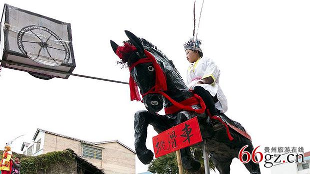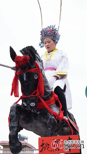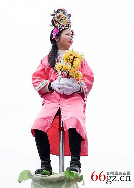狗场屯“亭子”彩车队,扮演的是神话故事和侠义英雄故事中的正面形象,演员都为本村小孩。