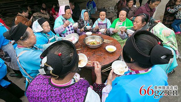礼迎八方宾客,吉昌屯村民每年正月十八都在汪公庙后院准备美味的屯堡美食“一锅香”款待四方宾客。