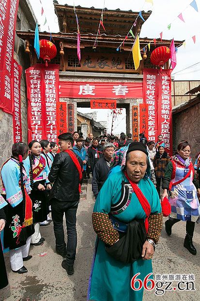 每年在整个抬汪公祭祀活动中,唯一变化的是,屯堡人根据年代属相扎制彩车巡游展示新年新气象。同时巡游的有古装仙女花车、吉祥舞狮队以及被外人称为屯堡之魂的地戏班子等等。