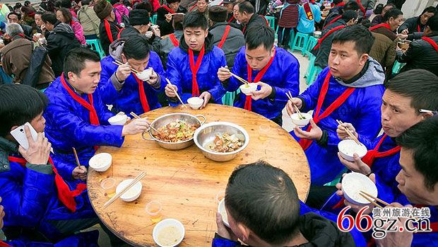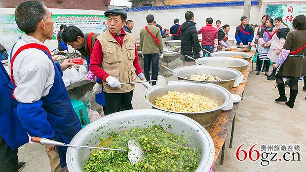 每年正月十七,鲍家屯村都为前来参加活动的宾客准备了美味的屯堡特色菜,一锅香。