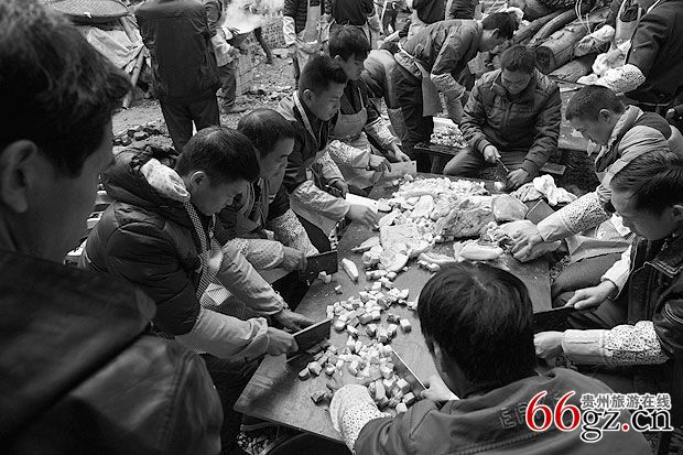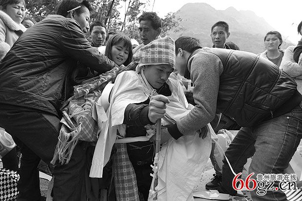6、打糍粑仪式:“节哀”这夜打糍粑是整次斋事的最后一次,孝家先打亿份,马郎客另打一份,意思是双方表示对寨邻亲友为孝家举办斋事熬更皱夜,操心尽力的谢意,轮到马郎客打的份子,进行仪式同样,马郎客打好糍粑要按照孝家方式一样将糍粑放在灵棺上敬供,然后孝家儿媳等与马郎客争抢耙耙盆和棒,这些东西是赠送给马郎客的,意思是孝子一家都留不下合亲人,要抢留纪念样品,相互留念。