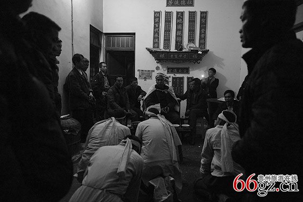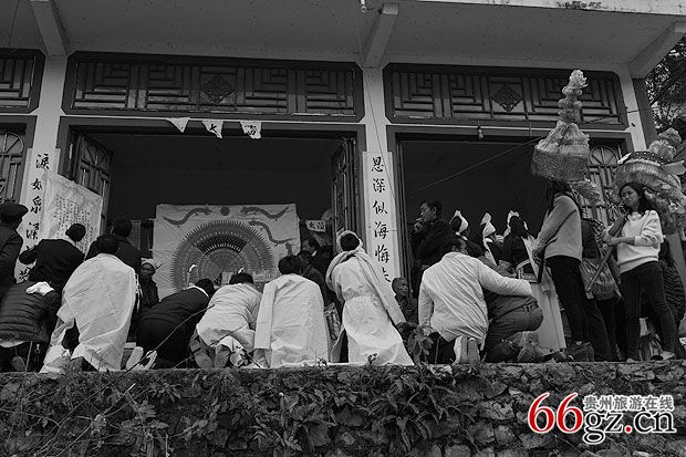 2、“酸汤客”。新故亡人的外家及内兄弟或内侄是最受尊重的,称为“酸汤客”,前往吊扣时做一把清白纸伞,茶食果品等祭品,邀约族亲,吹唢呐赴丧奠叩,行至孝家寨路口,礼仪人员立即将消息告知坐堂老人,立即吩咐孝男孝女一道及时赶到路口搀扶酸汤客到灵堂就坐,并跪于灵堂前倾听酸汤客痛诉苦,孝女同时跪在灵棺右边哭丧(此时场面是相关严肃凄惨)。意思是酸汤客系亡人的内亲,因离别人间而伤心过度,行走艰难,酸汤客主受到孝子的尊重扶背,伤心之处曾慰抚,内亲子女举全家之力为自己亲人送终超度,显孝习德而感欣慰,奠毕全孝子及奏乐送到客店家。