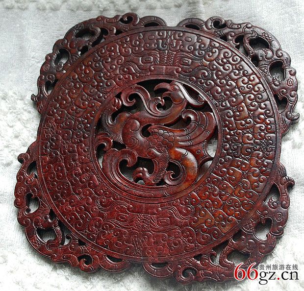 西南夜郎文化研究院、原开发利用研究所所长、研究员王德埙先生从贵阳赶来参加会议,将家珍藏两代的一块正方形外廓边长17.8公分,外直径16.5公分,内直径8.3公分,重394克.摩氏硬度计:3度的“战汉凤凰四龙玉壁,献赠竹王”。