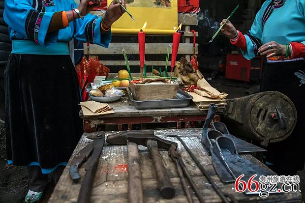 洪武年间,朱元璋调北征南,一时间黔中安顺战马嘶鸣、金戈林立。因战事需要,大批制作兵器的铁匠随军聚集。工匠们在征南大本营傅家寨点燃熊熊炉火,夜以继日赶制大批长柄刀、短柄刀、腰刀、镋钯、马叉、狼筅等兵器。平定云南梁王之乱后,朱元璋变“调北征南”为“调北镇南”,实施“移民实边”政策,各路迁徙而来的移民开始垦荒造田,围坡筑地。铁匠们除了一部份留在傅家寨,其余的遣散到今天安顺城周边,在普定偏坡寨、七眼桥镇老塘关以及头铺等地安置下来,从打造兵器改为打造板锄、镢头、镐锄、镰刀、马掌、抓钉、火钳等工具。