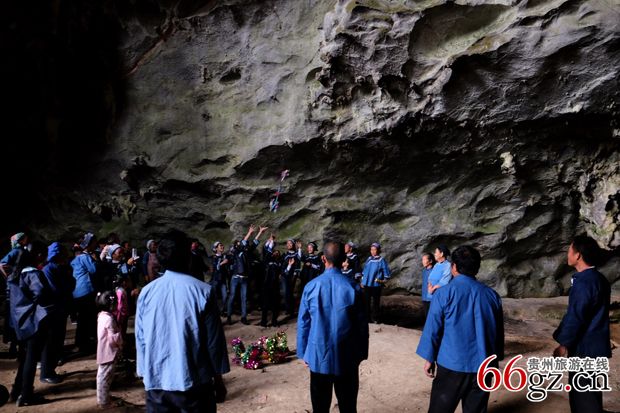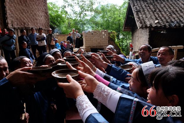 时近中午,川洞外边忽然热闹了起来,走出洞口一看,只见苗寨的乡亲们鱼贯而似的从山下扛着桌子、板凳、饭甑子,挑着碗筷,酒菜等一应物品拾级朝山半腰的川洞走来,不一会,乡亲们便在洞口的悬崖下摆好餐桌,端上酒菜,这阵势虽然比不上雷山苗年的长桌盛宴,也算是一个小小的长桌宴了。