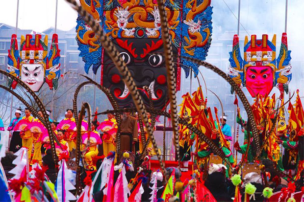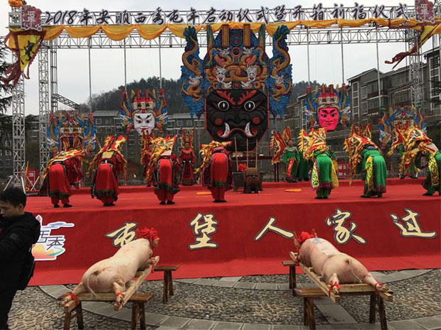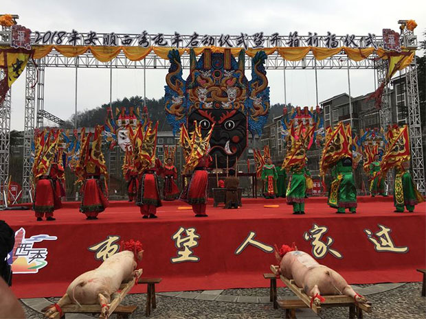 地戏,作为一种古老的民间戏剧,在其戏剧本体中就包含着诸多的祭祀因子。当剧中人物被罩上"神"的光晕后,崇尚多神信奉的屯堡人在把地戏看作娱人娱己的艺术样式时,更把剧中人物赋予神性而视为自身命运的主宰者。稼禾的丰歉、村寨的平安、人畜的兴旺等既靠科学技术,也依赖神灵的保佑。如此,祈福纳吉的祭祀仪式就自然构成地戏演出中的一部分了。