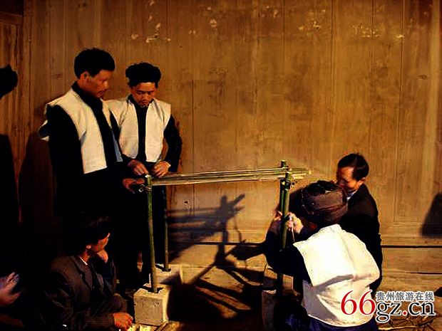 图为:请竹王老祖宗到家里来给他安竹王位。