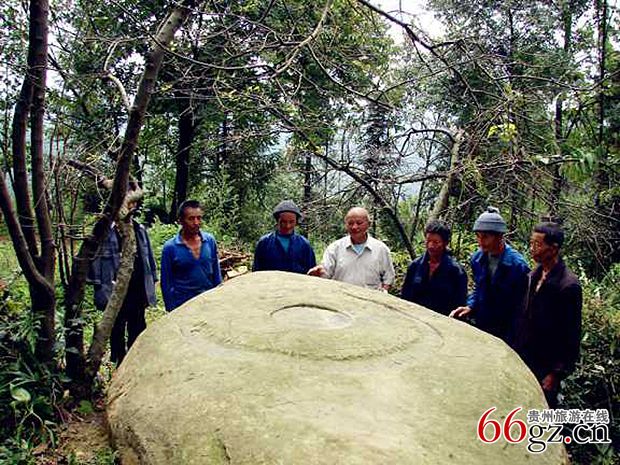 2009年8月13日镇宁自治县夜郎竹王文化研究会到蜂糖大坡考察,发现这块巨石,材质为磨刀石,表面平滑,长2.8米、宽2.2米、厚1.3米,约重12吨。表面均刻有各种各样的图案。由于大家都看不懂叫天象图。