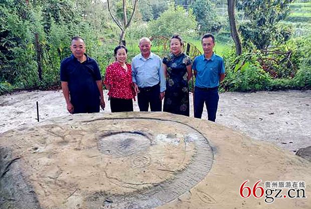 我向他们介绍发现、管护、破译情况,并说有的图案符号还未破译。布依学会学者王恒山认真观察后提出了大石北面线条为长城,南面两大路长线条短的为黄河,长的条为长江。还提出有的地方很平滑,但一样符号都没有是盆地,王恒山说:他还要深入研究。在场的都认为学者王恒山解读有道理。