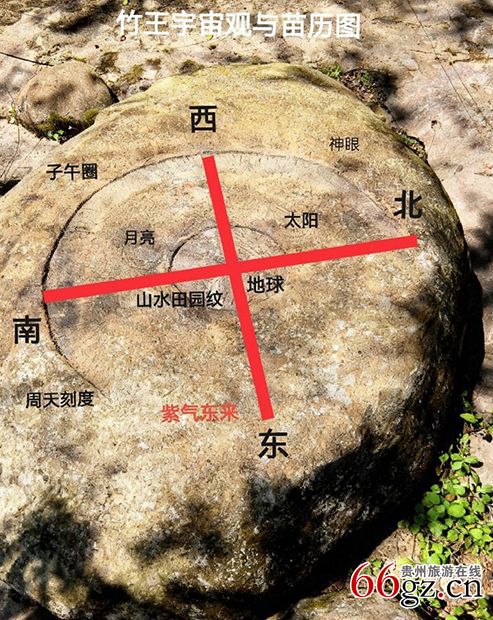 这幅石刻图既反映了当地苗族(蒙正人)以“天圆地方”为出发点的古老宇宙观,又体现了以竹王为首领的苗族人认识天象、改造自然的智慧和能力。