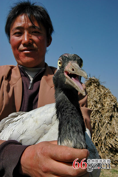 这只成年黑颈鹤,身高足有1.7米高,叫声洪亮,羽毛也很光亮,看得出来小李看护上的用心。趁着这个机会,我们走到黑颈鹤身旁,轻轻地用手摸着它的羽毛,黑颈鹤很乖,在小李的怀里不叫也不跳,看着黑颈鹤那乖巧的样子,再看看小李,心里有说不出的高兴和感激。