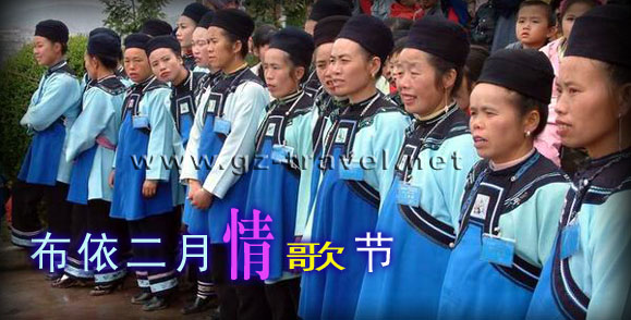 布依二月情歌节是贵阳周边布依族对歌的日子,也是布依族一个重要的欢聚节庆活动。布依族的妇女们每到这个时候都会盛装打扮来到花溪区小碧乡水坝村的版纳风情园,三三两两的坐在一处与对面的族人对歌,轻声细语即兴发挥。