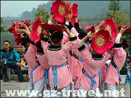 来参加情歌节的人个个是对歌高手.她们要对上几首山歌才能进场.