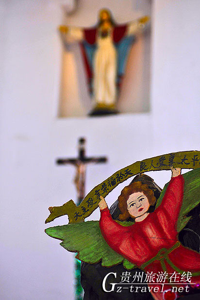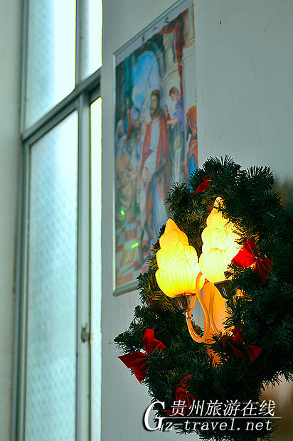 教堂内墙上的装饰,感受到圣诞节的气氛。