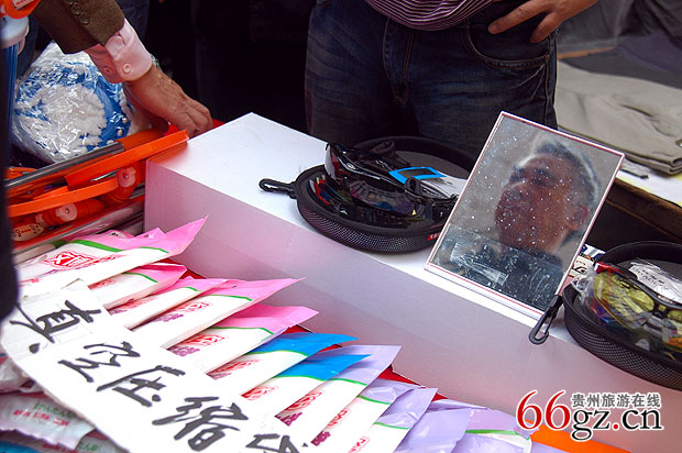 我们和着人流走了百来米,有些奇怪的是:难道都是狭长的小巷子,没有更宽敞一些的场地吗?由于贵阳近日多阴雨,难得碰到有阳光的周末,今天赶集的人实在是太多,巷子很拥挤。于是弘林把相机交给我,先行探路去了,我站在巷子角落里和附近的一摊主聊天。刘大哥是卖鞋子的,每个周日,他都在集市摆摊卖鞋,他的摊位是集市上很小的一种,一米五见方的木板搭在纸箱上,就能摆下他所有的货物。每个周末,他都要骑着摩托车赶来紫林庵交易小区市场,通常在早晨七点到,找摊位,摆货物,八点左右就有很多居民来买东西了。