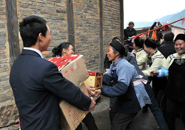 无奈之下,男方接亲的人们只好商量,如何把礼品赎买回来,尚需斗智斗勇。于是,讨价还价,连哄带骗,连买带抢,笑声此起彼伏,热闹非凡。