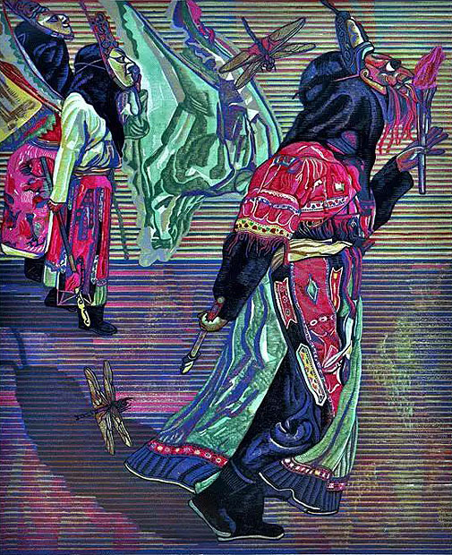 《戏.生活》绝版套色木刻 66.5x104cm 2015年3月