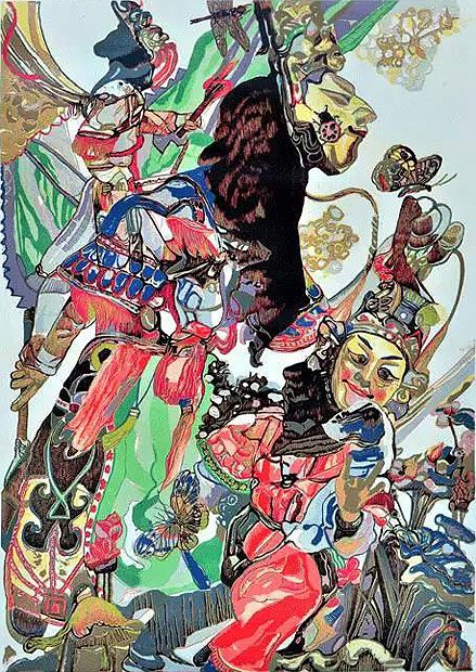 郑:看了你的新作。好象你是随着心情而变的。你的新作和以前的系列飞机题材给我的感觉不一样。新作明快而轻松,画得也很薄,象是一挥而就的。而以前的画给我更沉重的感觉,有种不明的灾难般的沉重郁闷和伤痛意识,是一种矛盾的自救意识,还是莫名的消极心态?我也说不清楚。